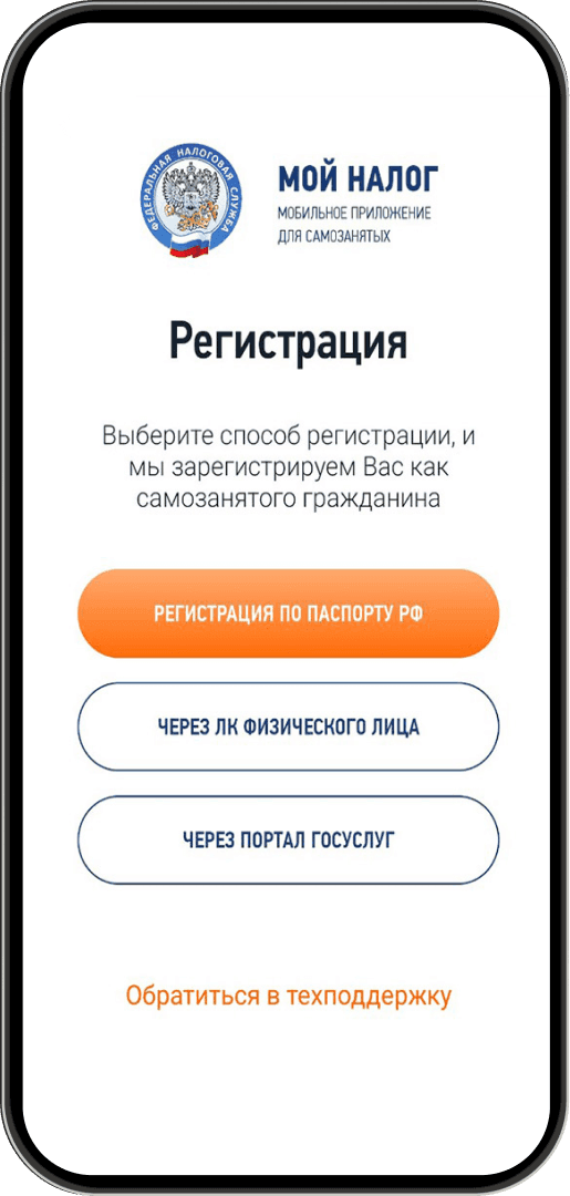 - Регистрация через официальное приложение ФНС «Мой налог»